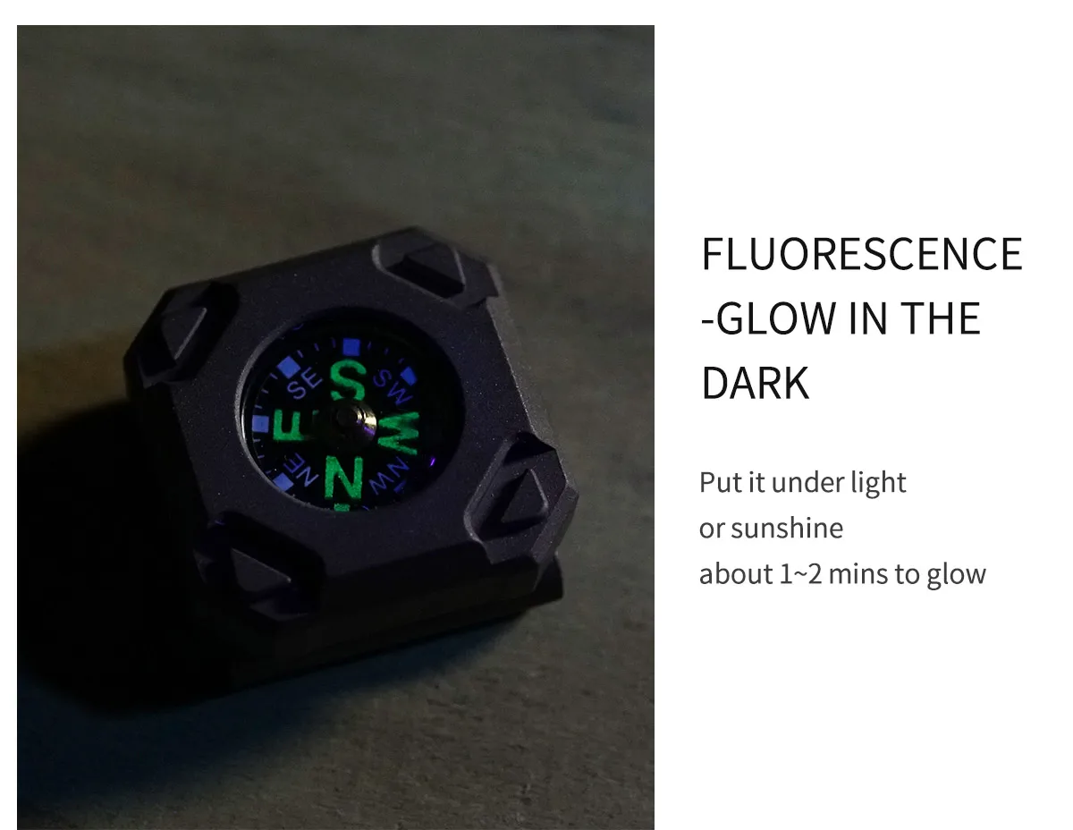 Para que la brújula brille en la oscuridad: ponla bajo la luz o el sol durante 1-3 minutos.