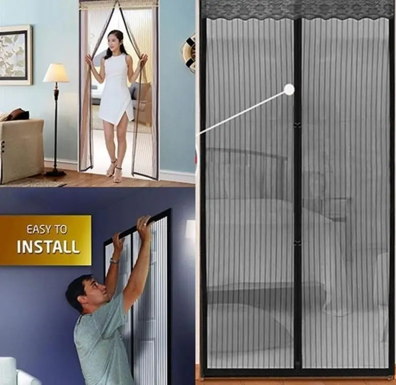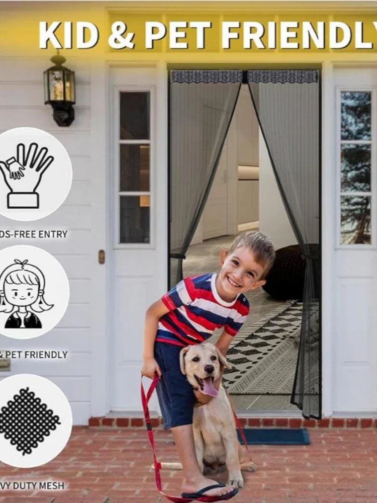 Cortina de puerta de pantalla magnética reforzada, cortinas antimosquitos, insectos, moscas, insectos, cierre automático, malla magnética para insectos, autosellante, resistente, Partición de malla manos libres, mantiene los insectos fuera, apto para mascotas y niños