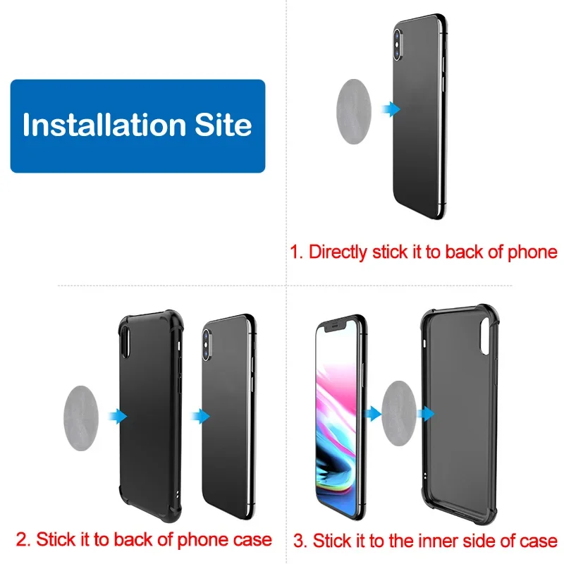 - Si no utiliza una cubierta protectora, puede pegar la placa de metal en la parte posterior del teléfono.