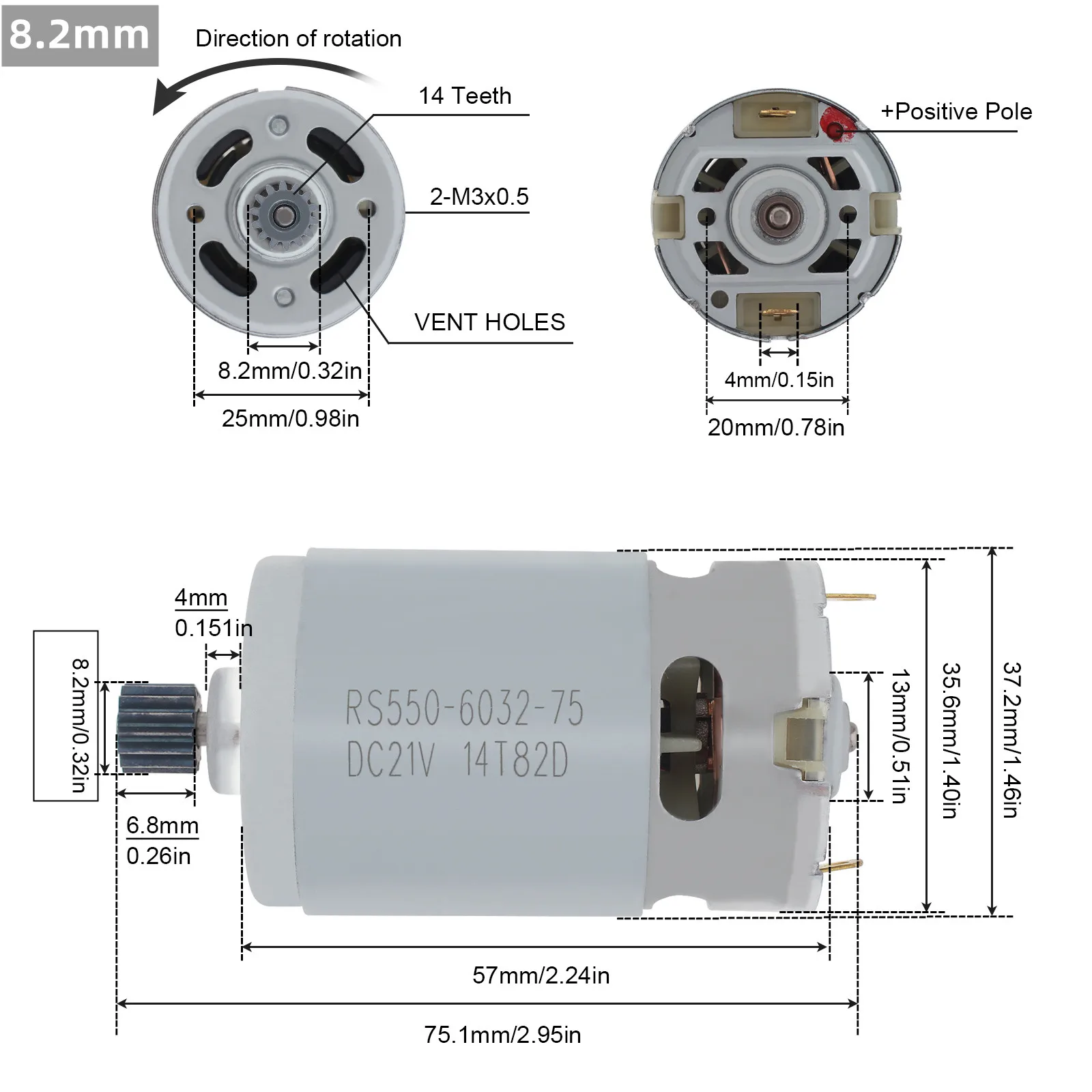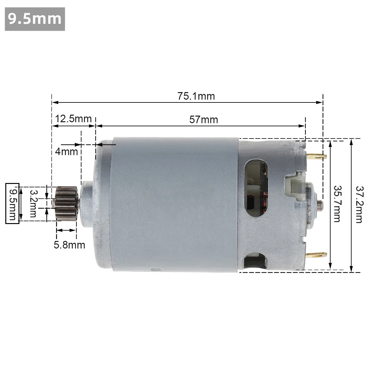 -En general, el engranaje de motor de herramienta eléctrica de 14 dientes tiene dos diámetros, 9,5mm o 8,2mm, nuestro producto es de 9,5mm. Confirme el diámetro del motor antes de la compra.